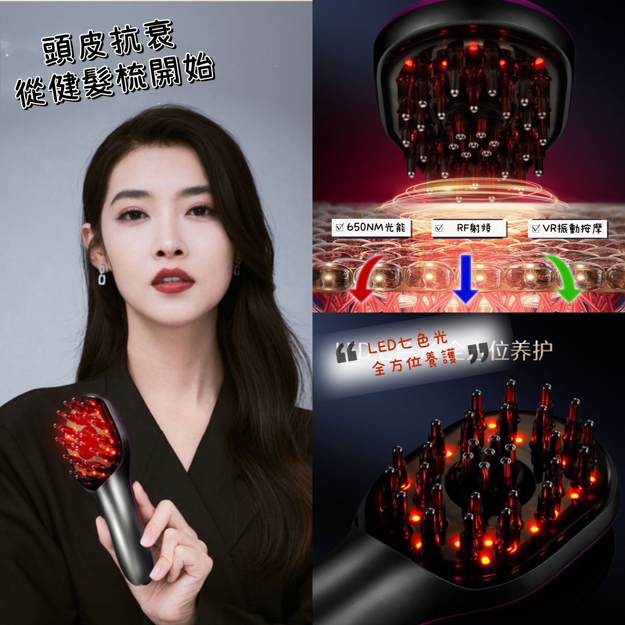 日本🇯🇵Marasil🔥 💁🏻♀️熬夜黨 脫髮黨必入⭕️ 院線上藥款健髮梳 💰$1048/ 件 一年保養 約2-3星期到貨 搭配七色光療🌈 修復毛囊 穩固髮根👍🏻濃密再現🤩 告別禿頭危機👋🏻拯救髮際線⭕️ 激活受損毛囊 促進新發再生🔥 ✨瑪瑞莎hair max健髮梳 從“頭”開始🤩 使用方法: 📌先在上藥瓶中註入育發液 💁🏻♀️然後用梳子先均勻的將育發液梳在頭皮上 上完藥 之後 開啟機器 選擇⚡️電流模式 緩慢沿著頭皮做按壓停留 感受微電流的頭皮按摩💆🏼♀️搭配光療護理 每天使用5-10分鐘⭕️